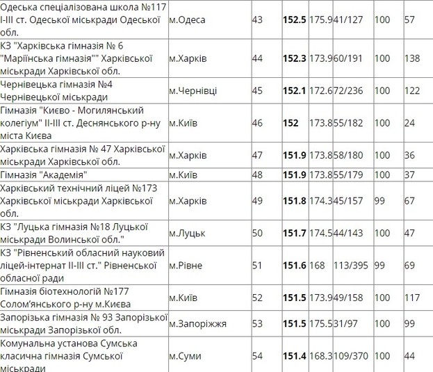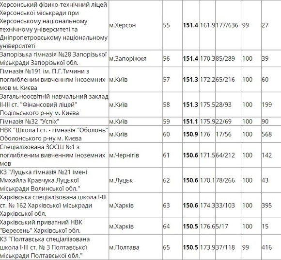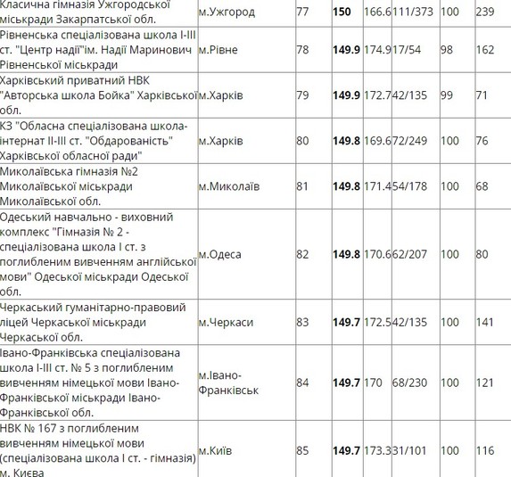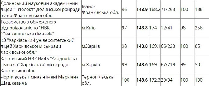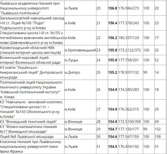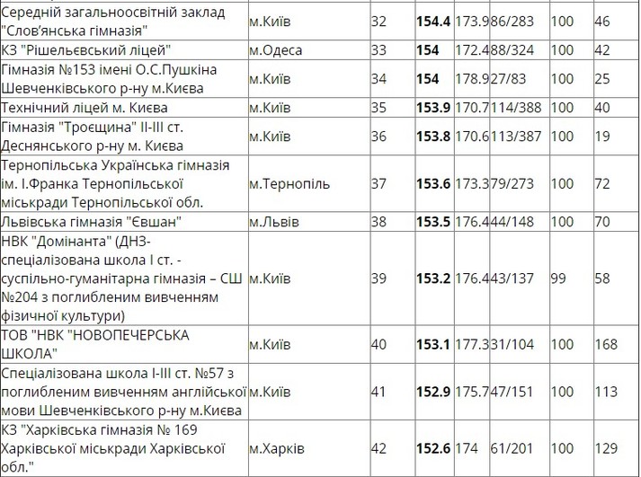 У першу п'ятірку потрапили три київські школи, одна львівська та дніпровська