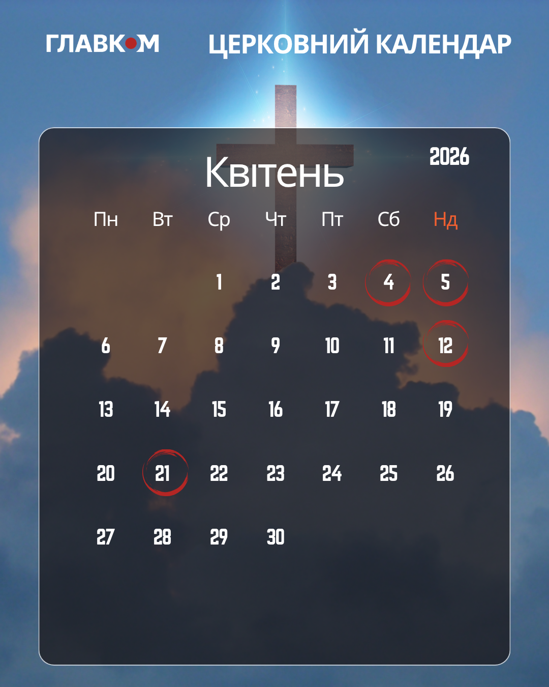 «Главком» підготував актуальний церковний календар та перелік ключових духовних подій у квітні 2026 року.