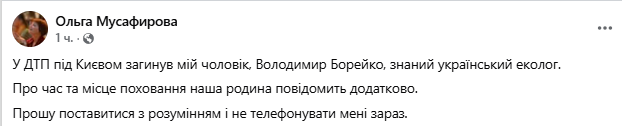 Про трагедію повідомила дружина Володимира Борейка Ольга