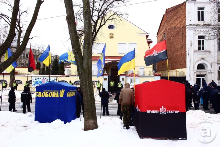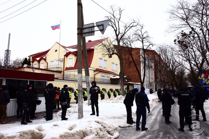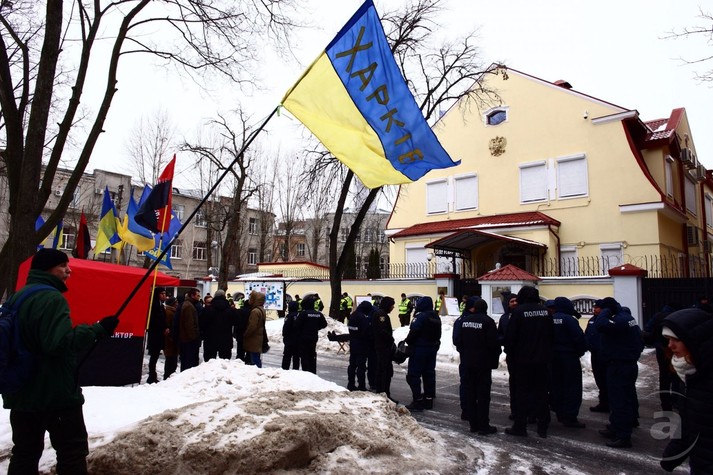 Зазначимо, сьогодні біля генконсульства РФ в Харкові проходить акція протесту. В акції беруть участь члени організацій «Правий сектор» і ВО «Свобода». Приєднатися до акції пізніше планує «Східний корпус». Проїзд по вулиці, що введе до консульства, закритий.