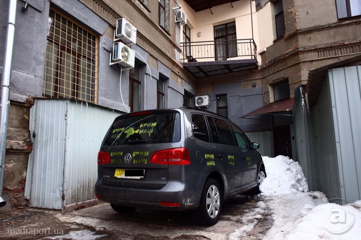 Припаркований недалеко від будівлі генерального консульства РФ в Харкові автомобіль розмалювали написами жовтого кольору «Крим наш». Про це інформує «МедіаПорт».