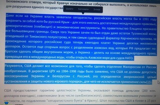 Зокрема, СБУ виявила літературу, в якій заперечується існування українського народу, його мови, а також саме право України на державність, і, навпаки, наголошується, що це нібито штучно створена держава.