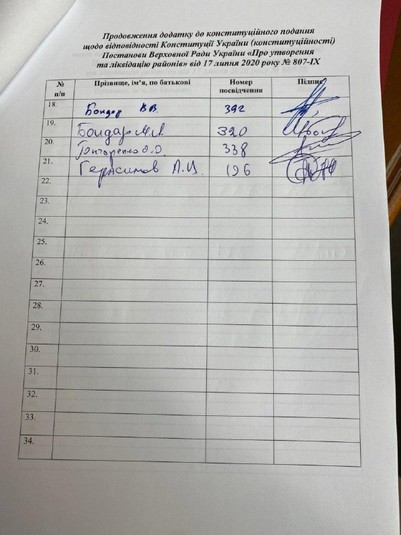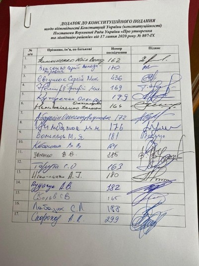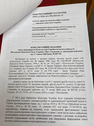 «Підписав подання до Конституційного суду з вимогою скасувати новий перелік районів», - написав нардеп.