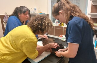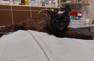 Знесилену тварину завезли в клініку. Котик зневоднений, втомлений, але має апетит. Ветлікарі безкоштовно взяли аналізи та провели ультразвукову діагностику.