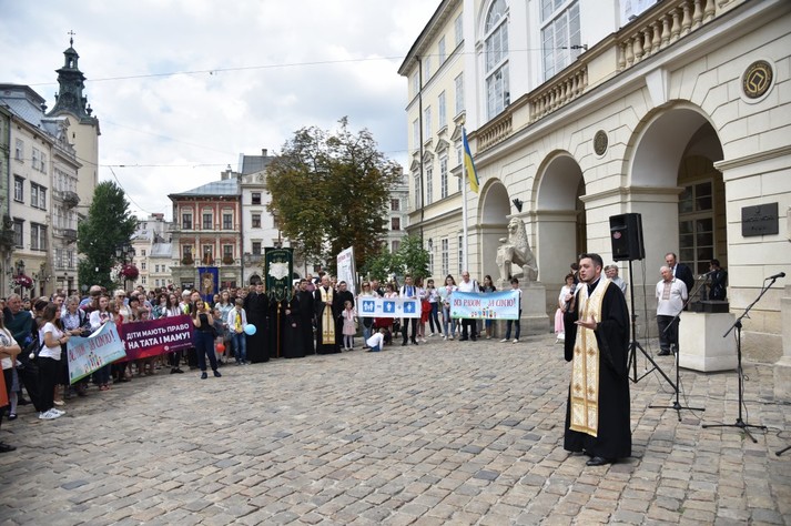 Греко-католики ішли від площі Ринок повз Гарнізонний храм святих апостолів Петра і Павла, по вулицях Гнатюка і Листопадовго Чину до пам'ятника Андрею Шептицькому біля собору святого Юра. В руках у них були плакати на підтримку сімейних цінностей: «Традиційна родина – здорова країна», «Діти мають право на маму і тата», «Ми – за майбутнє наших дітей», «Всі разом – за сім'ю», «Стоп урокам сексуального виховання в школах».
