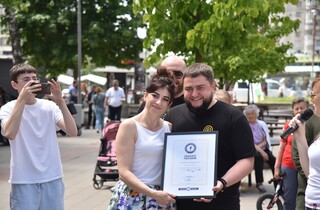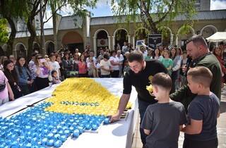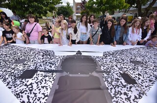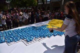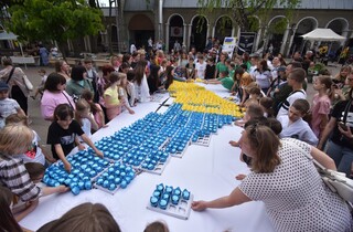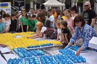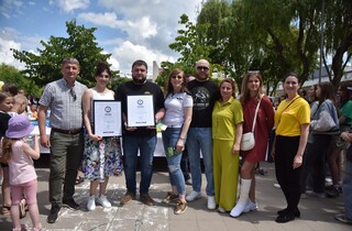 Щоби викласти безпілотника-рекордсмена з розмахом крил у 5 метрів, знадобилося близько 800 синіх і жовтих кексів. Організували захід львівські волонтерки Ольга Тесляк і Анна Крисюк. Допомогли розкласти крила 137 дітей, які взяли участь у встановленні рекорду.