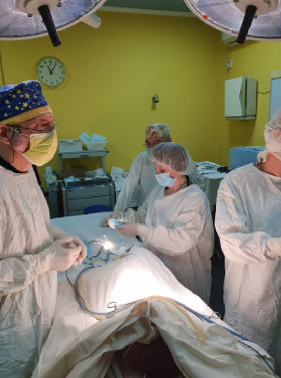 «Ми вшили електрод стимулятора нерва по перикарду справа і він тут же, в операційній, запрацював. Почали тестувати його – все було добре, діафрагма справа працює», – пояснює керівник Центру малоінвазивної хірургії Андрій Дворакевич.
