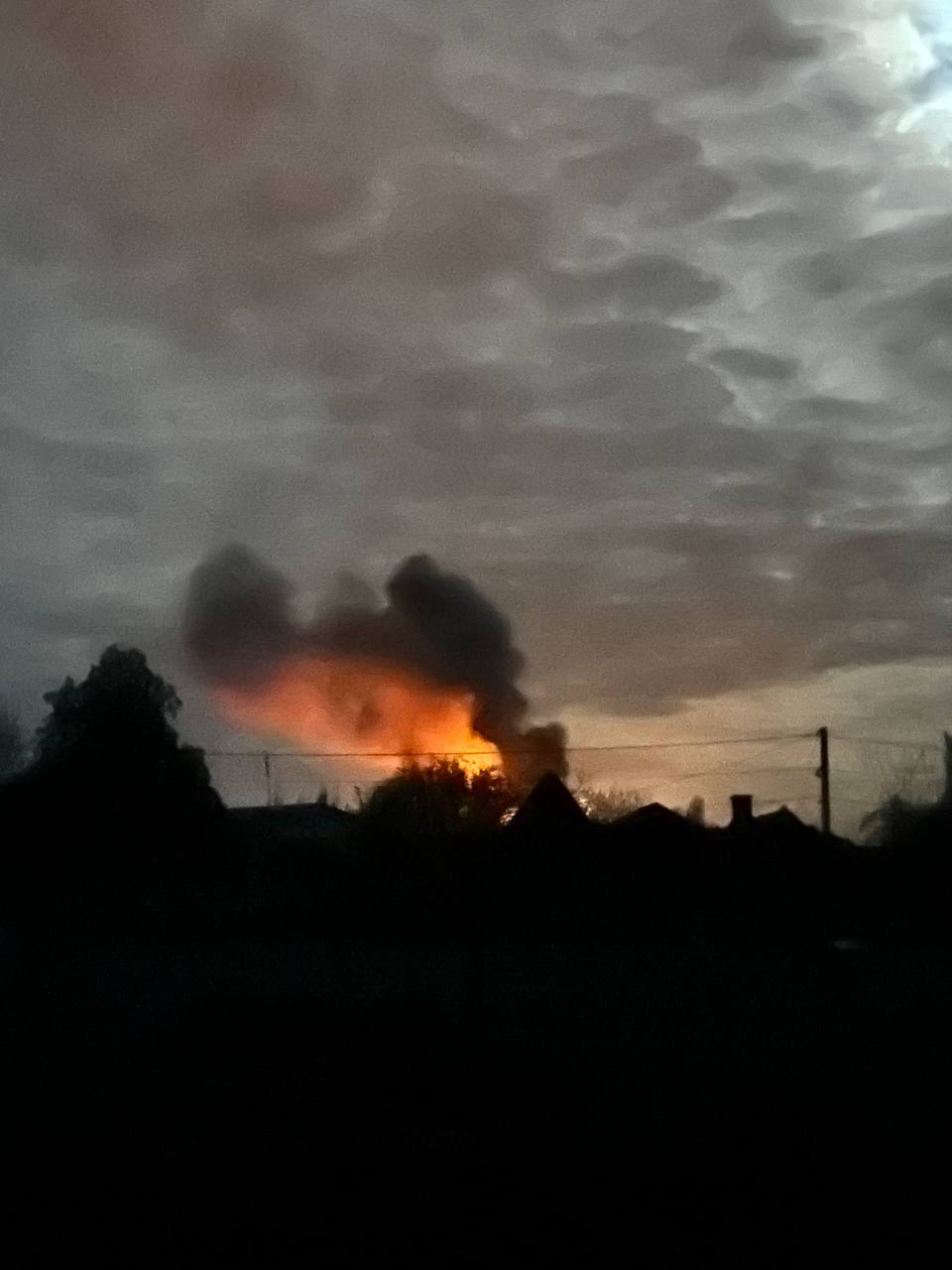 Очевидці повідомляють, що перед пожежею було чутно кілька вибухів, після чого частина міста залишилася без електропостачання.