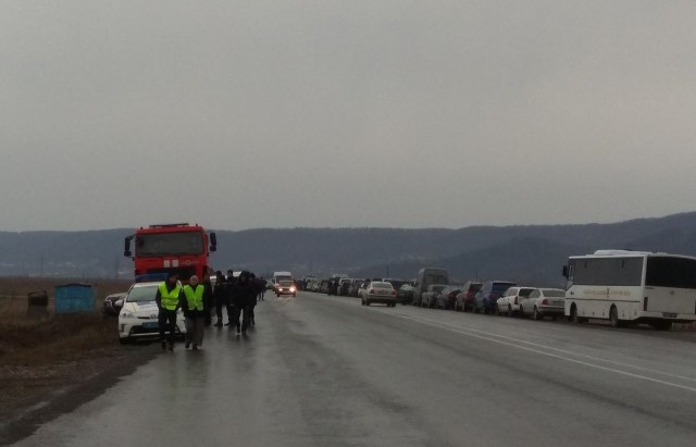 «Людей звозять з різних районів Закарпаття. Кажуть, що приїхали з Хуста, Виноградівщини та Іршавщини. Автобуси, навіть шкільні, весь час прибувають. Зараз на полі стоять до трьохсот людей Поліція чатує практично кожні 10 метрів», - пишуть журналісти.
