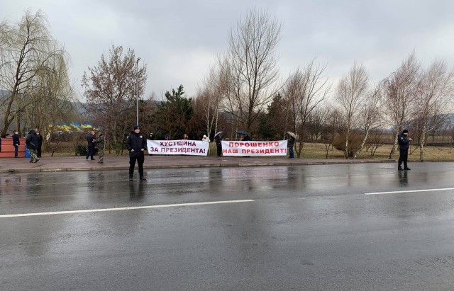 Як зазначає видання, журналісти місцевого телеканалу «Sirius» розповідають, що вже з 9:00 години ранку кількасот людей стоять із прапорами та банерами «Хустщина за Президента» та «Порошенко – наш президент».