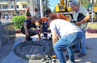 Також комунальники демонтували вінок із написом «Від трудової Полтави». Незабаром мають демонтувати і круглий барельєф на якому зображені військові й робітники. Щодо постаменту – то його повний демонтаж може зайняти більше часу. Строки поки не оголошуються.