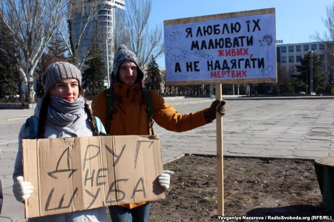 У Запоріжжі на Фестивальній площі відбулася антихутряна акція «Знімай хутро назавжди». Учасники мітингу виступили на підтримку законопроекту, що має заборонити хутряні ферми і вирощування тварин для хутряного виробництва в Україні.