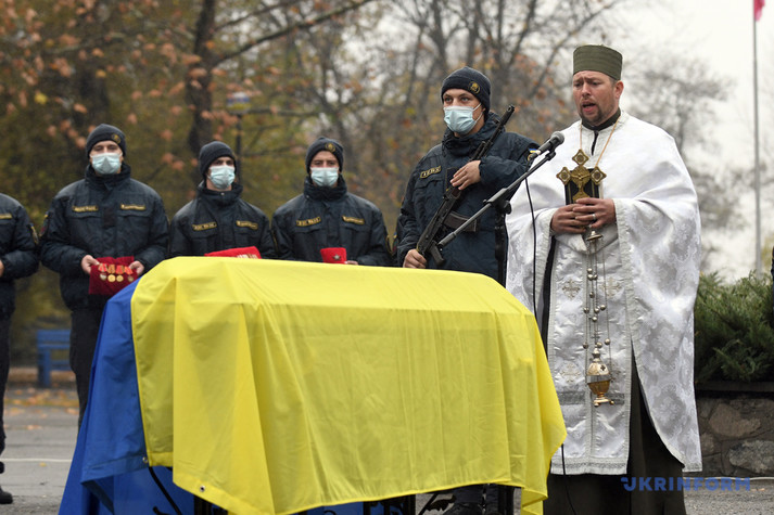 У похоронній церемонії взяли участь військові Нацгвардії, в якій служив онук – Іван Гутник-Залужний, який загинув влітку 2014 року на сході країни