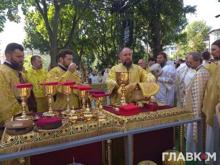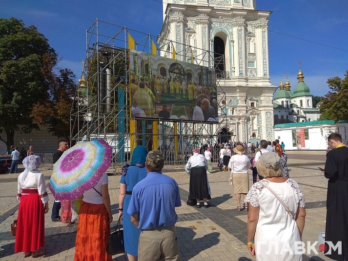 В Софійському соборі почалася урочиста божественна літургія на честь дня Хрещення Русі. Біля собору вже зібрались віряни.
