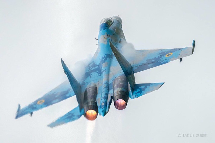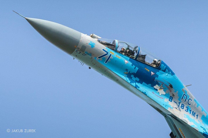Льотчики-інструктори Олександр Оксанченко та Юрій Булавка на учбово-бойовому літаку Су-27, попри примхи погоди, показали свою нову пілотажну програму. Виступ українців отримав схвальні відгуки від іноземних колег та авіаційних фанатів Європи.
