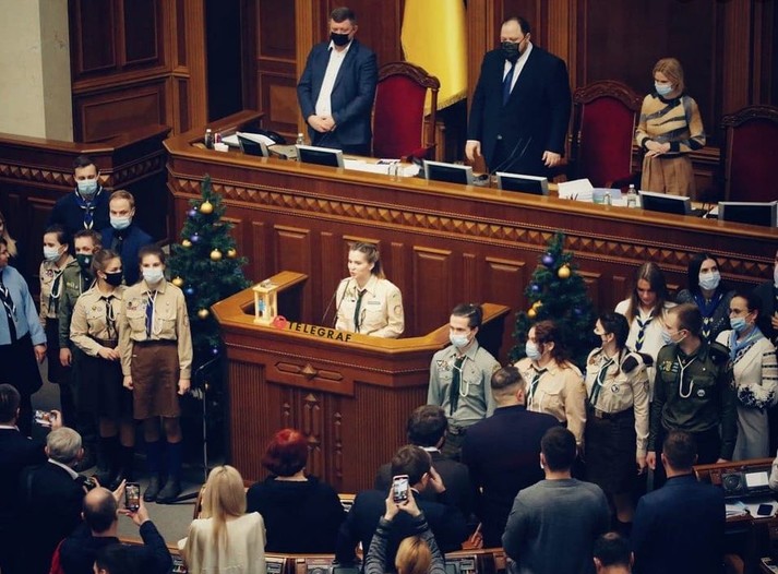 Українські пластуни традиційно напередодні різдвяних свят принесли у Верховну Раду Вифлеємський вогонь. Про це наприкінці засідання парламенту оголосив спікер Руслан Стефанчук.