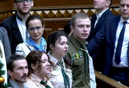 Вифлеємський вогонь із рук українських скаутів отримав голова парламенту Руслан Стефанчук. Свій візит до депутатів пластуни завершили піснею.