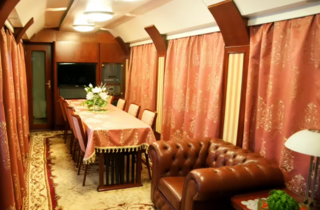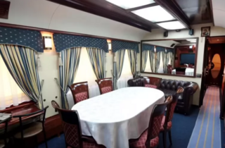У цих вагонах передбачені спеціальні купе для охорони та службового персоналу. Всередині і вишукані люстри, і посуд високої якості, аби пасажири відчували себе максимально комфортно.