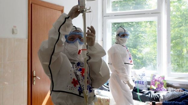 Також у Львівській області медики обласної клінічної лікарні також розмалювала свої захисні костюми.