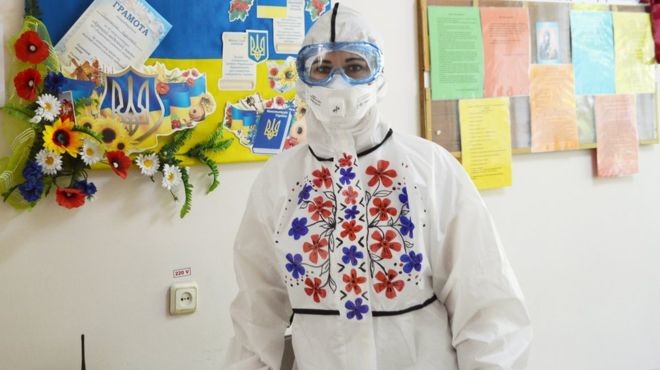 На Буковині та у Львівській області медики перетворили свої одноразові захисні костюми у вишиванки. Про це повідомило місцеве видання Кіцмань.City.