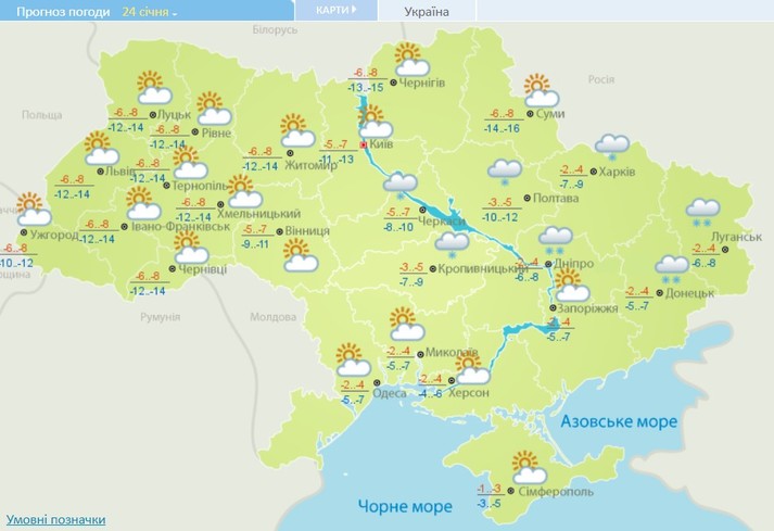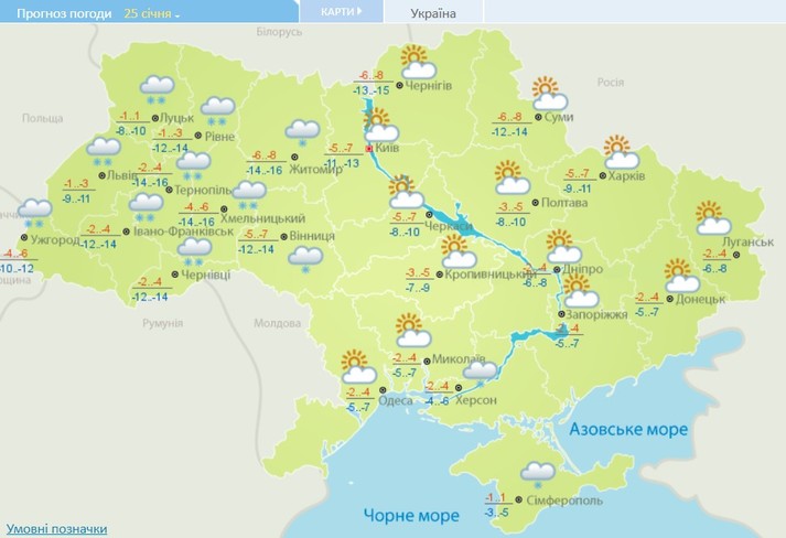 Температура повітря сьогодні, 21 січня, в межах 0... -4 градусів морозу, на півдні +1... + 5 градусів.