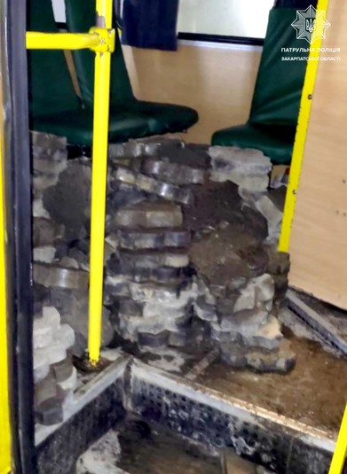 Патрульна поліція затримала водія маршрутки, який завантажив у салон автобуса бруківку із площі Петефі у центрі Ужгорода та намагався відвезти її у сусіднє село. Поліцейським водій пояснив, що йому «дозволили взяти тротуарну плитку». Про це повідомляє пресслужба патрульної поліції Закарпаття.