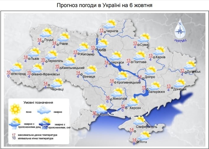 Температура на Закарпатті та у південній частині вночі +3+8, вдень +13+18; на решті території вночі +1+6 тепла, на поверхні ґрунту заморозки 0+5, вдень +10+15 тепла.