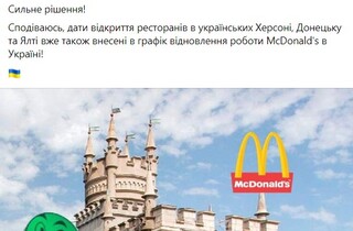 Раніше в українському офісі McDonald's заявили, що інформація щодо планів про відкриття ресторанів у серпні не відповідає дійсності. У компанії справді є амбіції відновити роботу в окремих регіонах, проте конкретного рішення, планів та графіків відкриття немає.