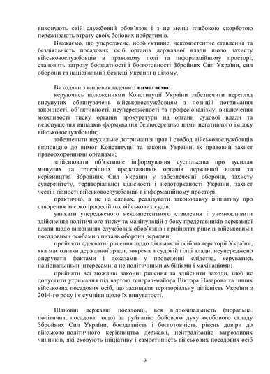 Каталізатором заяви став вирок генерал-майору Віктору Назарову