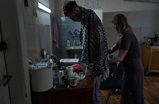 Жінка піклується про пораненого чоловіка і живе разом із ним у шпиталі