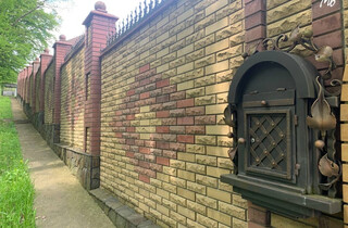 Резиденція прихована високою огорожею – 2,5-3 метра, а головні ворота та хвіртка прикрашені кованими елементами декору