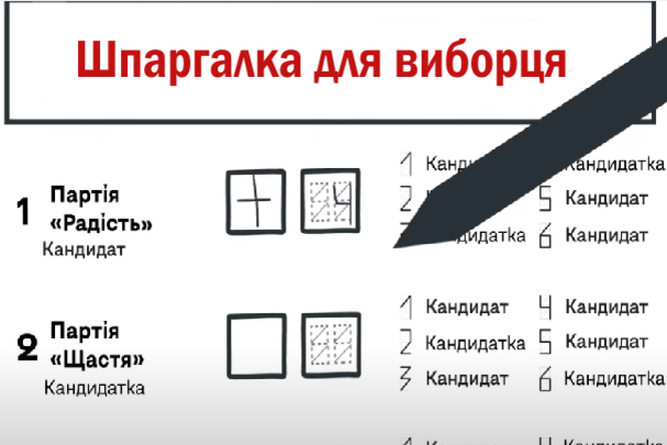 Бюлетень на цих виборах матиме особливий вигляд: виборцю потрібно буде не тільки поставити звичну галочку навпроти назви обраної партії, а й (за бажанням) обрати конкретного кандидата від неї на цьому окрузі та записати його номер в спеціальний трафарет.