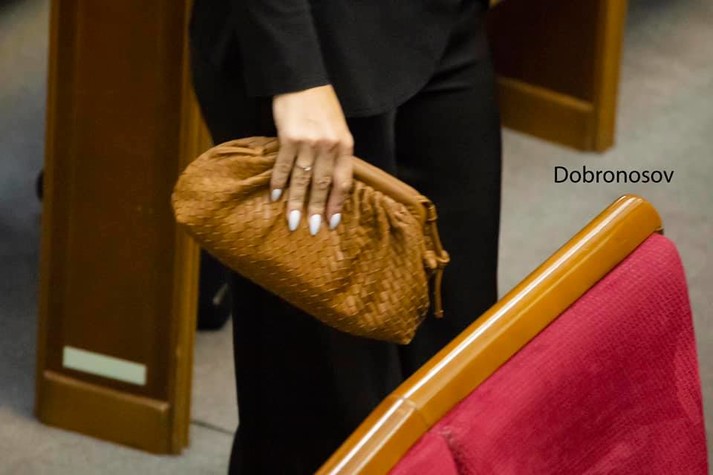 Колега Гришиної по фракції і член Комітету з питань регламенту Людмила Марченко в залі Ради ходила з сумочкою, дуже схожою на The Pouch від Bottega Veneta. Вартість такого клатча з фірмовим плетінням Intrecciato – €1723 або 53421 грн.