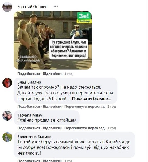 Глава фракції «Слуга народу» Давид Арахамія в інтерв’ю китайським ЗМІ заявив, що вбачає схожість політичної сили з Комуністичною партією Китаю. І що політсила вважає Китайську Народну Республіку важливим стратегічним партнером і має намір перейняти досвід Комуністичної партії Китаю (КПК) в управління економікою та розбудові держави.