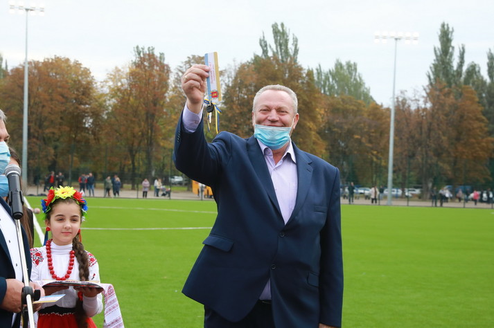 «Завдяки програмі президента України «Велике будівництво» та командній роботі фахівців на всіх рівнях, ми збудували якісний та сучасний спортивний майданчик, що заохочує займатися спортом всіх: дітей і дорослих, аматорів і професійних спортсменів. 20 червня було отримано необхідні дозволи і розпочались роботи та вже 1 жовтня, в рекордні 3,5 місяці, стадіон був повністю готовий!», – наголосив Віталій Боговін.