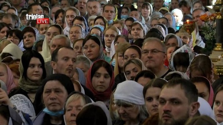Як повідомляє «Суспільне», на службі у закритому приміщенні люди стояли щільно один до одного. Майже усі – без захисних масок, у тому числі священнослужителі. У соборі було багато літніх людей та діти.