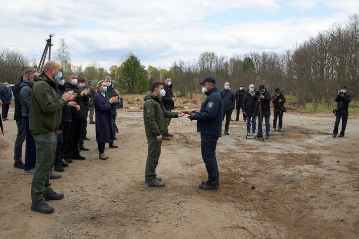 У неділю, 26 квітня, Президент Володимир Зеленський, перебуваючи з робочою поїздкою у Київській області, зустрівся з працівниками ДСНС України, які брали участь у гасінні масштабної лісової пожежі в Чорнобильській зоні відчуження. Він вручив 22 рятувальникам державні нагороди.