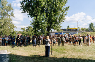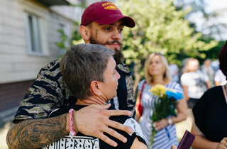 «Зараз наші хлопці стоять на захисті нашої країни. Боронять, щоб ця клята російська орда, яка прийшла до нас додому, стала своїм брудним рваним лаптем на нашу землю, забралася геть. Але, як казав нам син, мама, кожен воїн повинен повернутися додому. Зі щитом, на щиті, але додому… Ми хочемо, щоб всі бачили в цьому муралі історію не смерті, а життя: життя наших бійців, які повернуться додому. І кожна мати, дружина зможе їх обійняти», – каже мама героя Юлія Піскова.