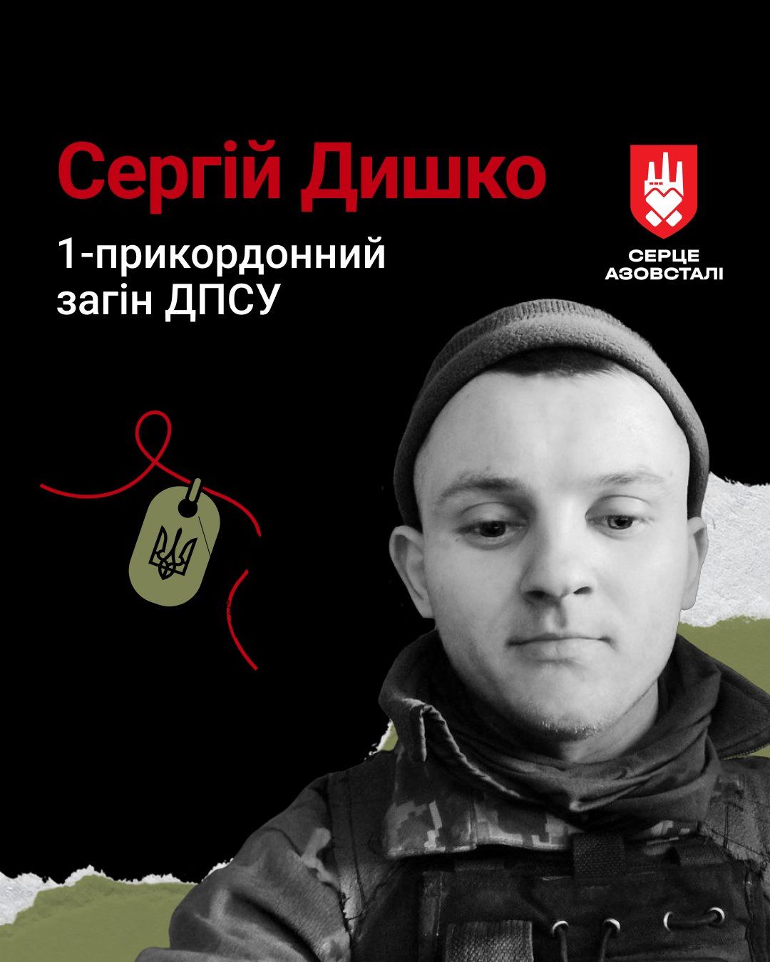 23-річний старший сержант Сергій Дишко на псевдо Капілан загинув 8 травня 2022 року під час бойового завдання на «Азовсталі». Про це повідомляє «Главком» із посиланням на Небесний легіон Волині.