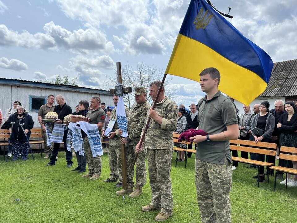 Поховали захисника України на місцевому кладовищі у Костополі.