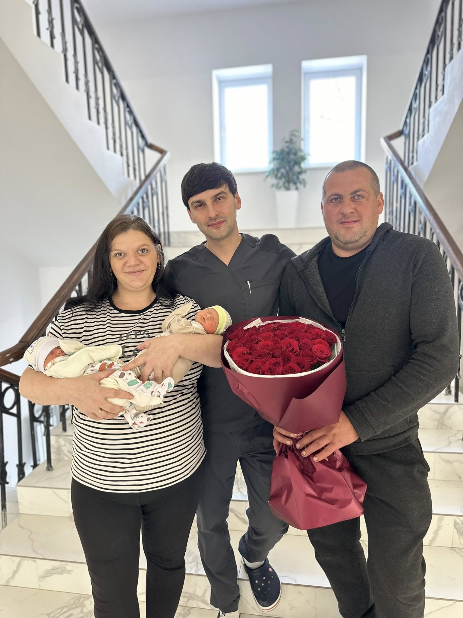 Упродовж усієї вагітності жінка та діти перебували під постійним контролем акушерів-гінекологів. На 37-му тижні лікарі провели плановий кесарів розтин. На світ з’явилися дві дівчинки: Евеліна та Юліана вагою 2300 і 2450 грамів відповідно. Обидві новонароджені отримали 8/8 балів за шкалою Апгар і народилися без ускладнень.