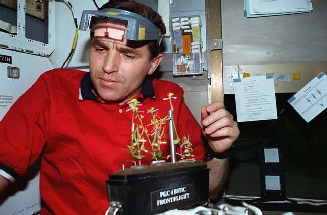 8. Кожен із членів екіпажу мав на орбіті своє завдання. Українець виконував роль вченого-біолога. Екіпаж проводив експерименти з трьома видами рослин: ріпою, соєю та мохом. Космонавти мали з'ясувати, як стан невагомості впливає на зростання та розвиток цих рослин.