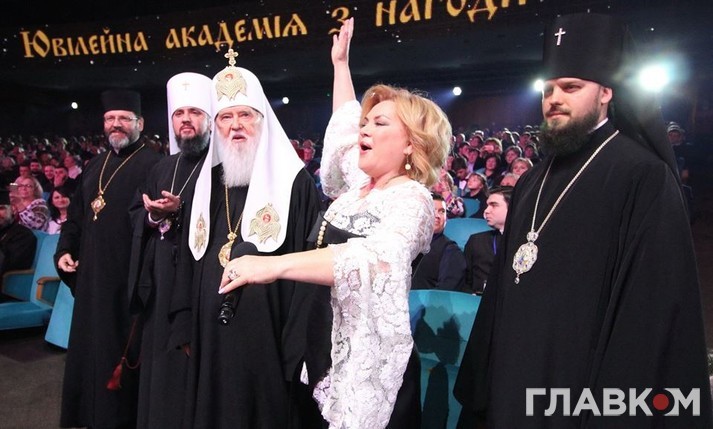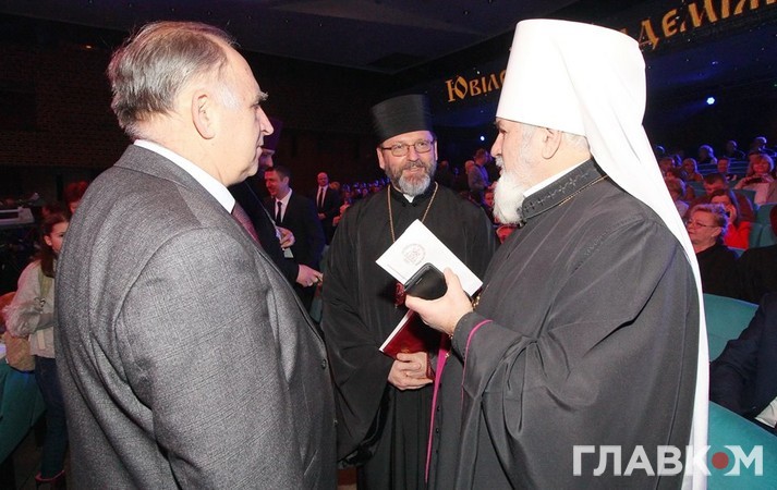 У залі було багато відомих гостей: політиків, діячів культури. На сцену з вітальним словом до патріарха також вийшов дует екс-президентів – Віктор Ющенко і Леонід Кравчук. Перший президент згадав, як Філарет ще до обрання Кравчука главою держави казав йому слова «у незалежній Україні повинна постати незалежна від Москви Українська церква». «Все своє життя ви робите все необхідне для створення Української церкви, яку, будемо говорити, уже створили», – зробив висновок Кравчук.