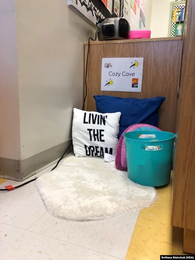 Перерв між уроками немає. Один урок плавно переходить в інший. Спочатку мене це шокувало: як це — немає перерви? Потім я зрозуміла, чому це не травматично для дітей. Вони не сидять під час занять весь час за столами, а багато рухаються. У дітлахів є перерви на кількахвилинну гімнастику чи йогу. Частину занять вони сидять на килимку перед «розумною дошкою».