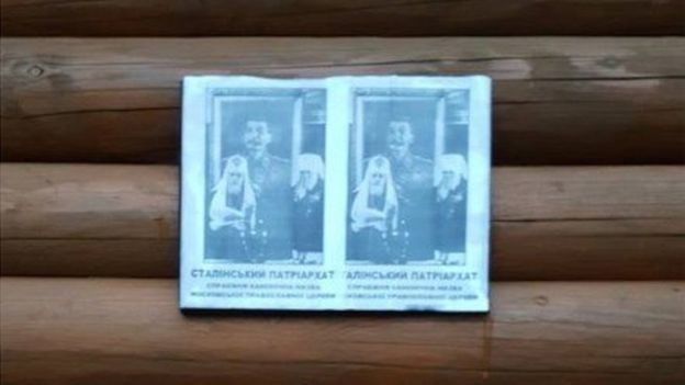У Львові церкву Московського патріархату завісили плакатами зі Сталіним