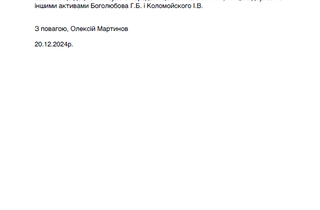 «Однак посадові особи банку продовжують аукціон реєструючи нових учасників на ньому. Незважаючи на судові заборони та кримінальні справи, посадові особи і на даний час ані зупинили, ані скасували аукціон», – додає Олексій Мартинов.