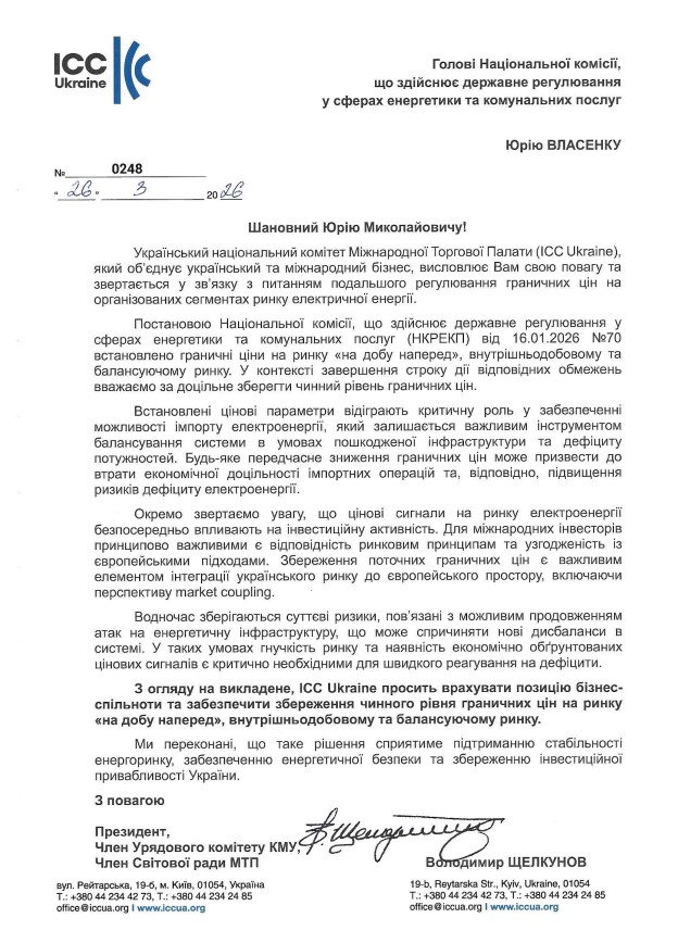 У зверненні до Національної комісії, що здійснює державне регулювання у сферах енергетики та комунальних послуг, бізнес-спільнота наголошує, що встановлені граничні ціни відіграють критичну роль у забезпеченні імпорту електроенергії, який залишається одним із ключових інструментів балансування енергосистеми в умовах дефіциту потужностей.