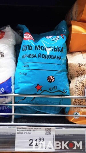 Прихильники вітчизняного продукту можуть придбати морську харчову йодовану сіль «Повна чаша», кілограм за 21,99 грн.
