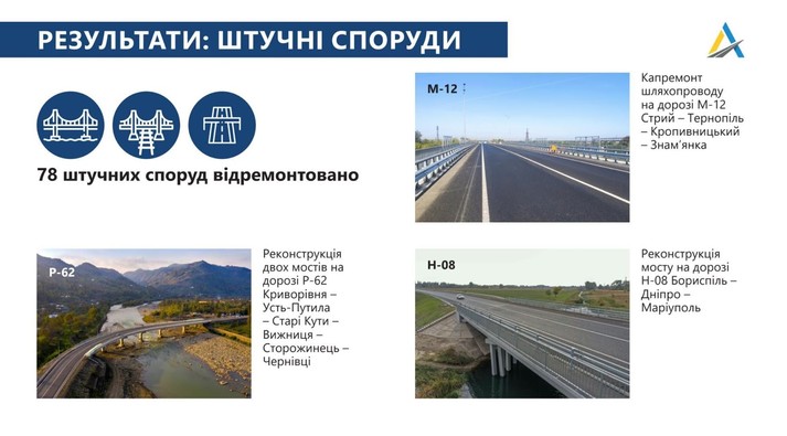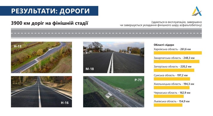 «Чимало доріг, які ремонтуємо, оновлюються одразу в кількох областях, наприклад: Н-13 Львів — Самбір — Ужгород, M-18 Харків — Сімферополь —Алушта — Ялта, М-12 Стрий — Тернопіль — Кропивницький — Знам'янка, М-03 Київ — Харків — Довжанський. Зшиваємо України», — зазначив він.