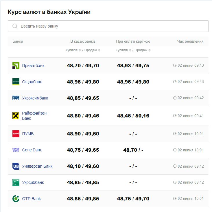 ПУМБ продає євро за ціною 49,60 грн, а OTP Bank по 49,85 грн.